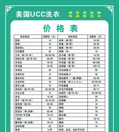 干洗店價格表大家看到過么?