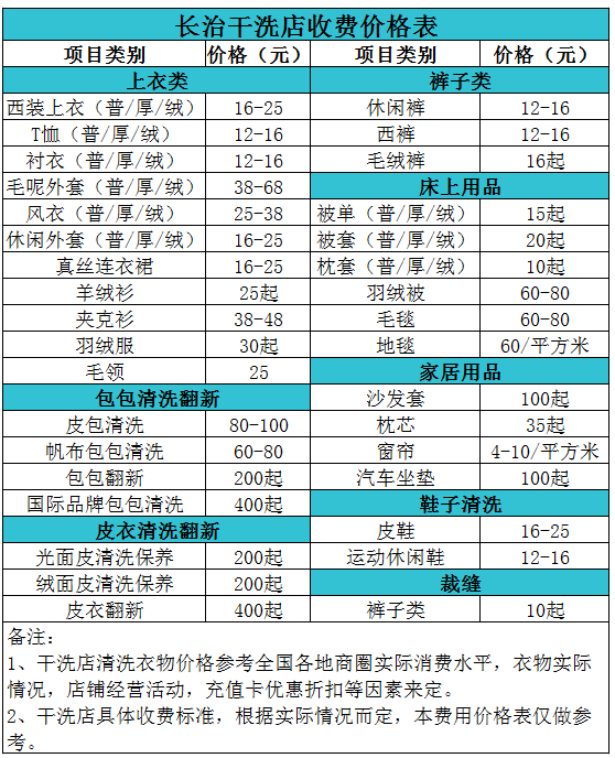 長治干洗店收費價格表【詳細收費標準】怎么收費更賺錢