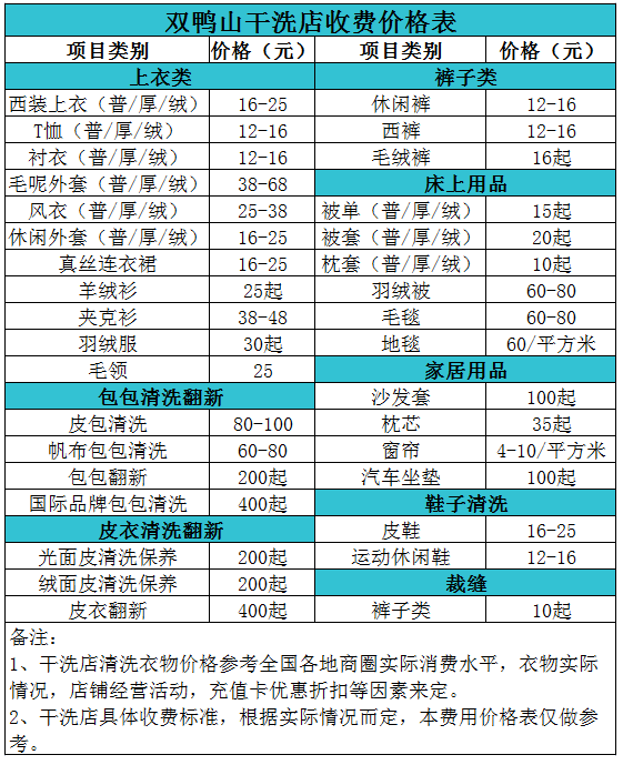 雙鴨山干洗店收費價格表【詳細收費標準】怎么收費更賺錢