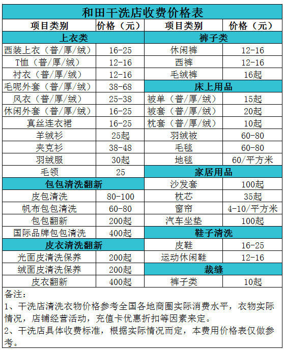 和田干洗店收費(fèi)價格表【詳細(xì)收費(fèi)標(biāo)準(zhǔn)】怎么收費(fèi)更賺錢