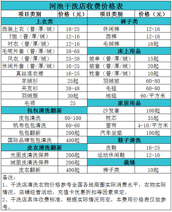 河池干洗店收費(fèi)價格表【詳細(xì)收費(fèi)標(biāo)準(zhǔn)】怎么收費(fèi)更賺錢