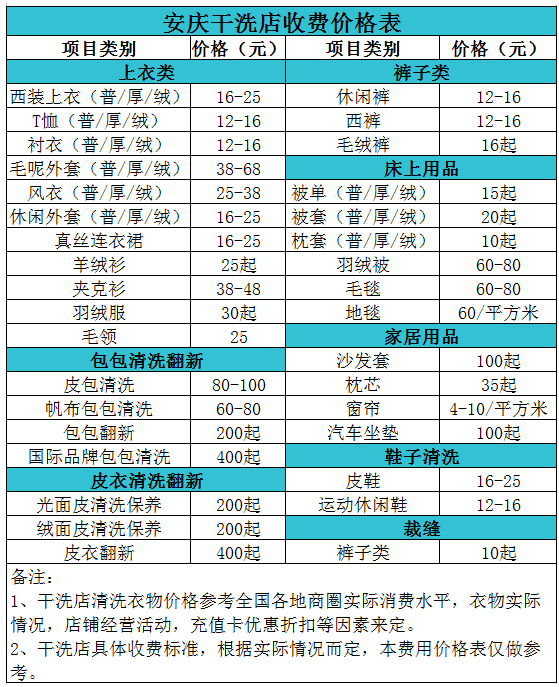 安慶干洗店收費價格表【詳細收費標準】怎么收費更賺錢