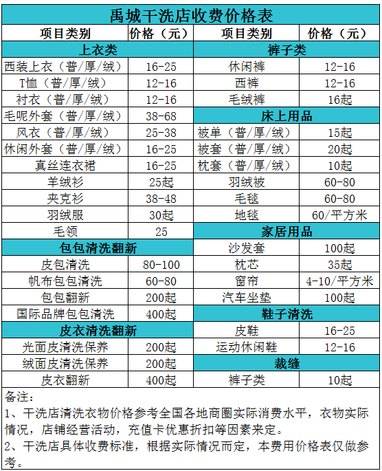 禹城干洗店收費價格表【詳細收費標準】怎么收費更賺錢