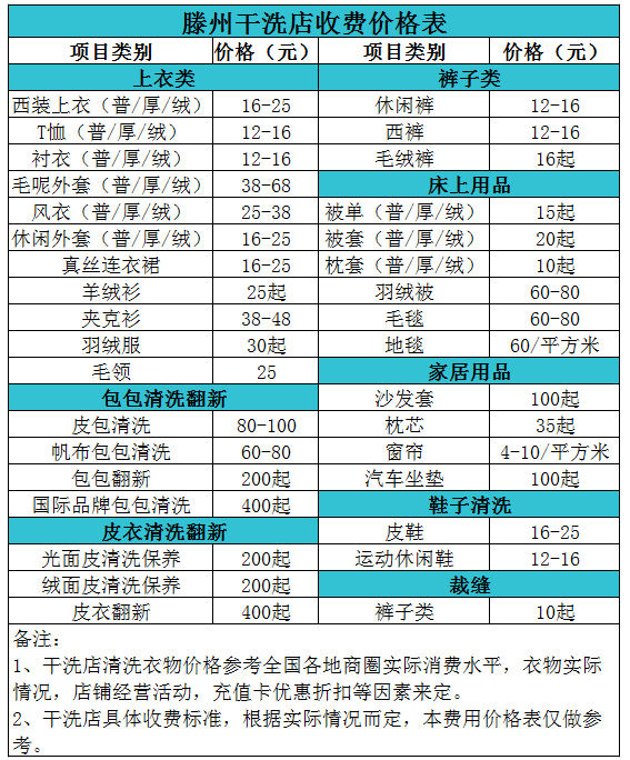 滕州干洗店收費價格表【詳細收費標準】怎么收費更賺錢